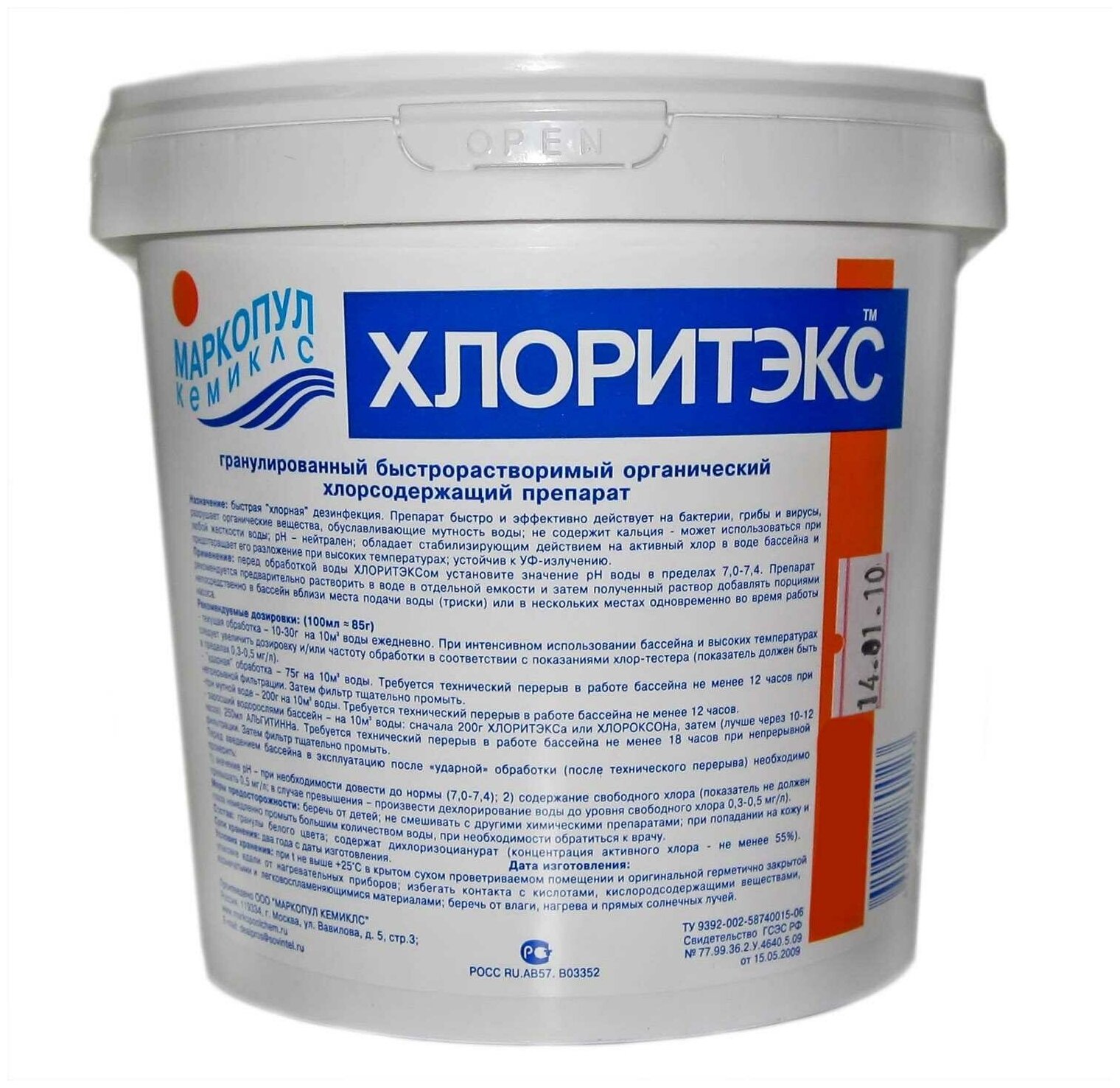 Химия для бассейнов Маркопул Кэмиклс Хлоритэкс 1 кг гранулы ведро М26 1 179 ₽