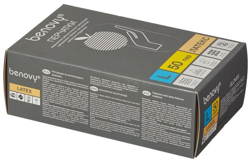 Медицинские перчатки Benovy L, латексные, опудренные, гладкие информация: