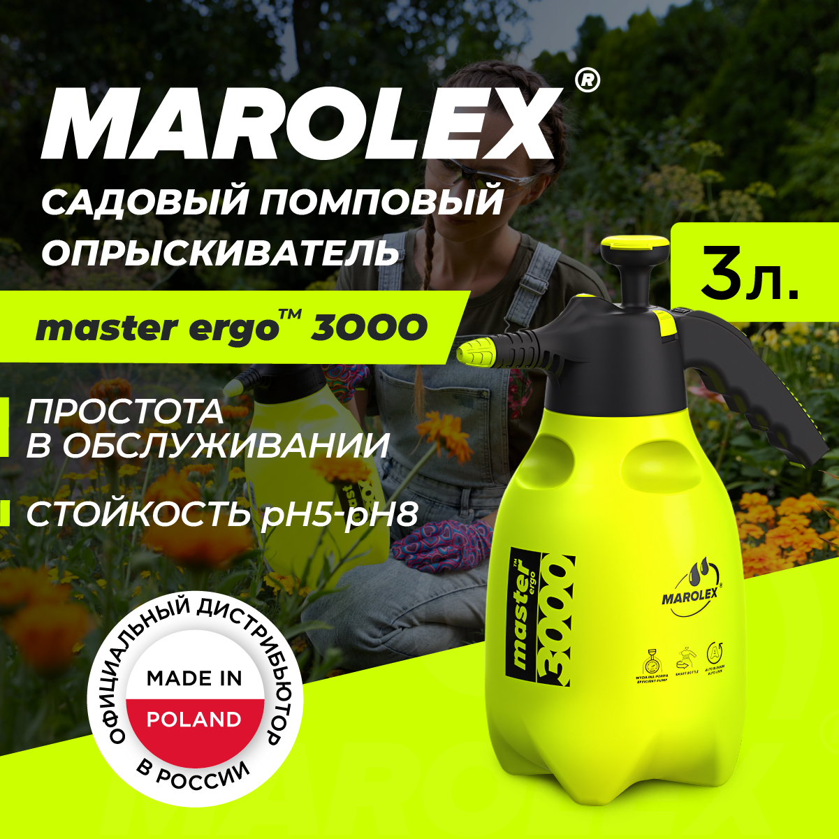 MAROLEX | Master ergo 3000 - Ручной садовый помповый опрыскиватель.