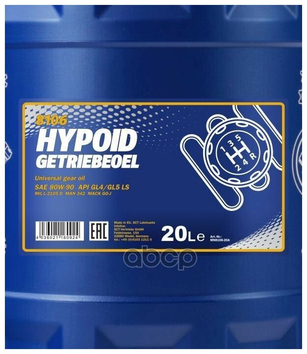 8106-20 Mannol Hypoid Getriebeoel 80W90 20 Л. Трансмиссионное Масло 80W-90 Api Gl4/Gl-5 Ls ;Mil-L-2105 D;Mack Go-J MANNOL арт... 22 785 ₽