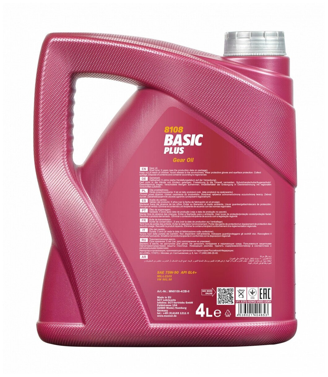 8108-4 mannol basic plus getriebeoel 75w90 4 л синтетическое трансмиссионное масло 75w-90