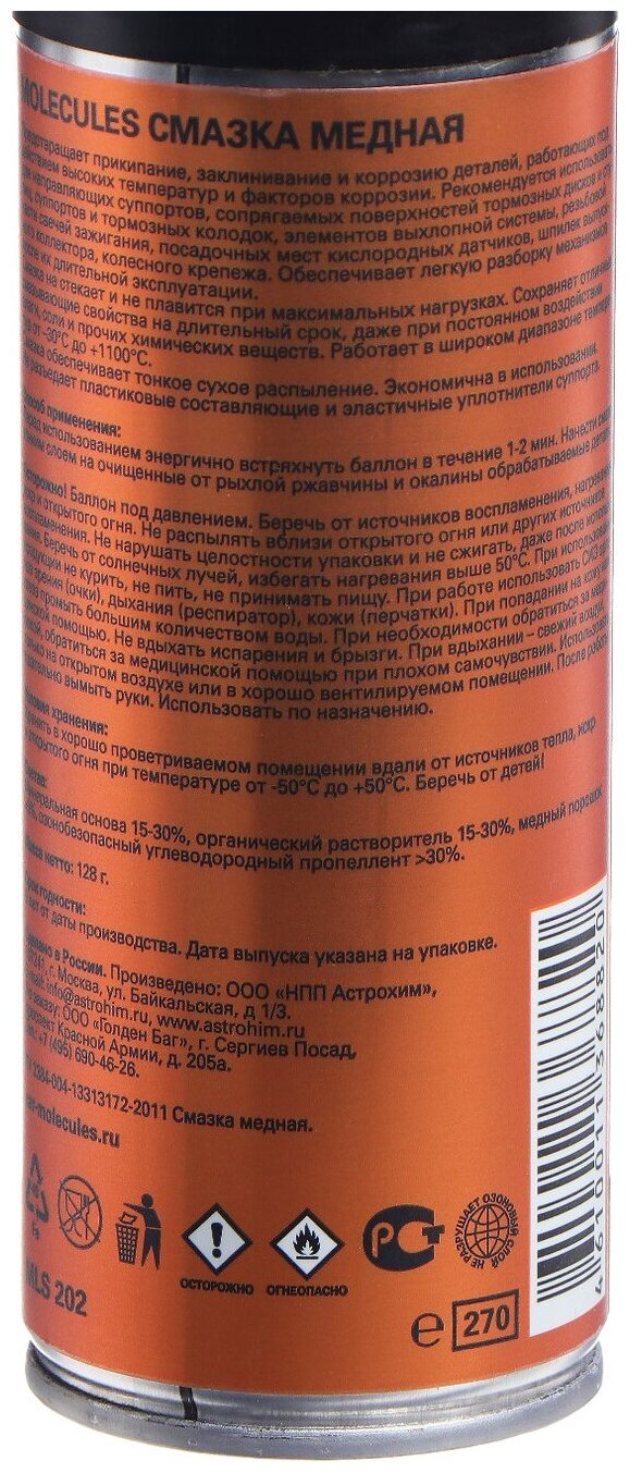 Molecules Смазка медная, 270 мл информация: