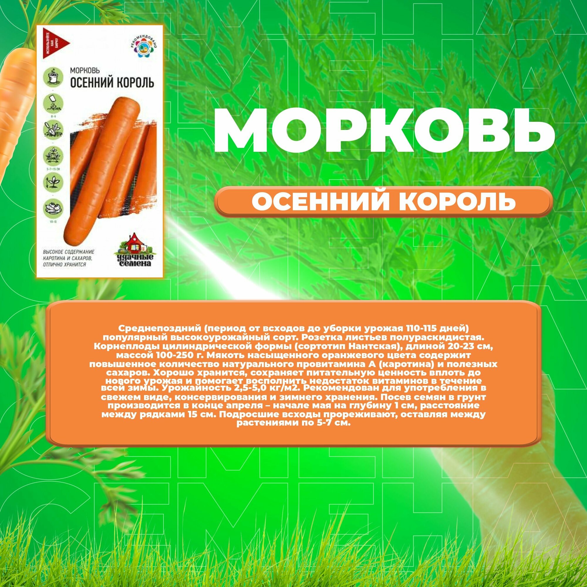 Удачные семена Морковь Осенний король 2 гр информация: