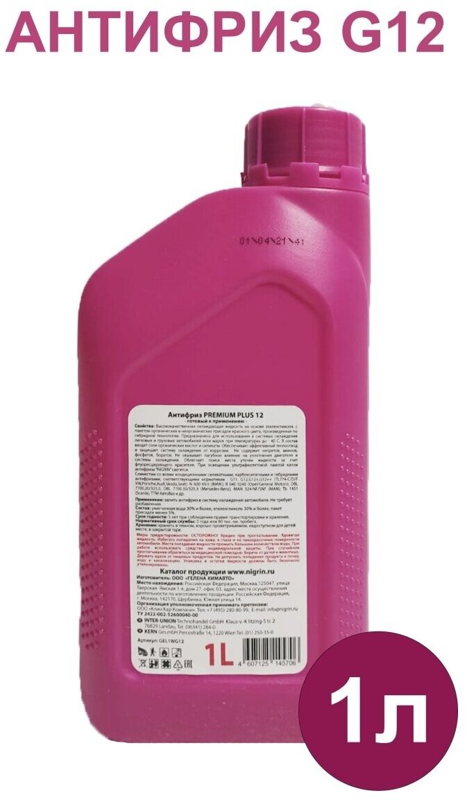 NIGRIN Антифриз Nigrin Ultra Plus 12, всесезонный, 1 л информация: