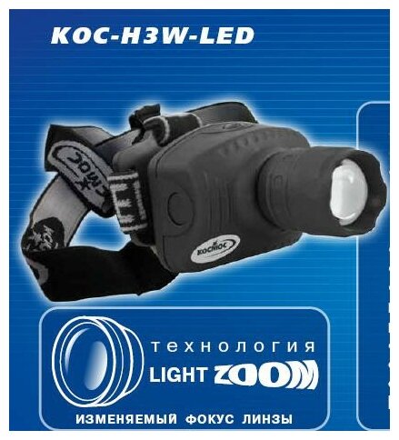 1шт. - Фонарь налобный , 3W LED, 3 батарейки ААА, 180Lm, / Космос; арт. KOC-H3W-LED; оригинал / - комплект 1шт