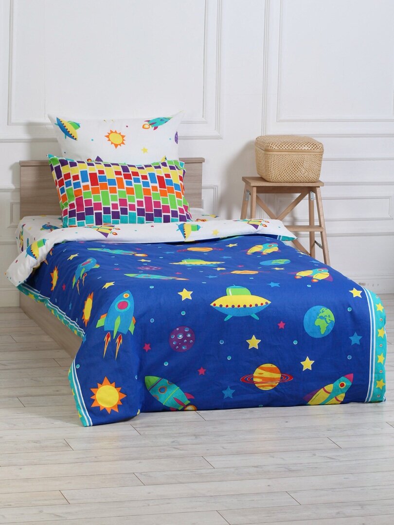 Постельное белье Мечта "Галактика" 1,5-сп наволочка 50х70 1шт Простынь на резинке 90х200 см Пододеяльник 145х215 см