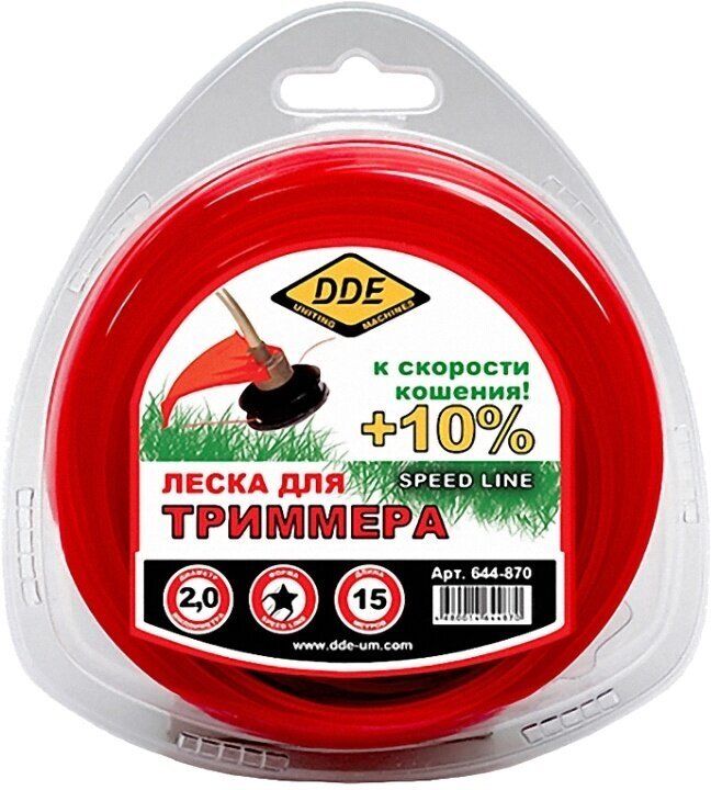 Леска триммерная в блистере сечение звезда 2.0 мм (15м) DDE Speed line