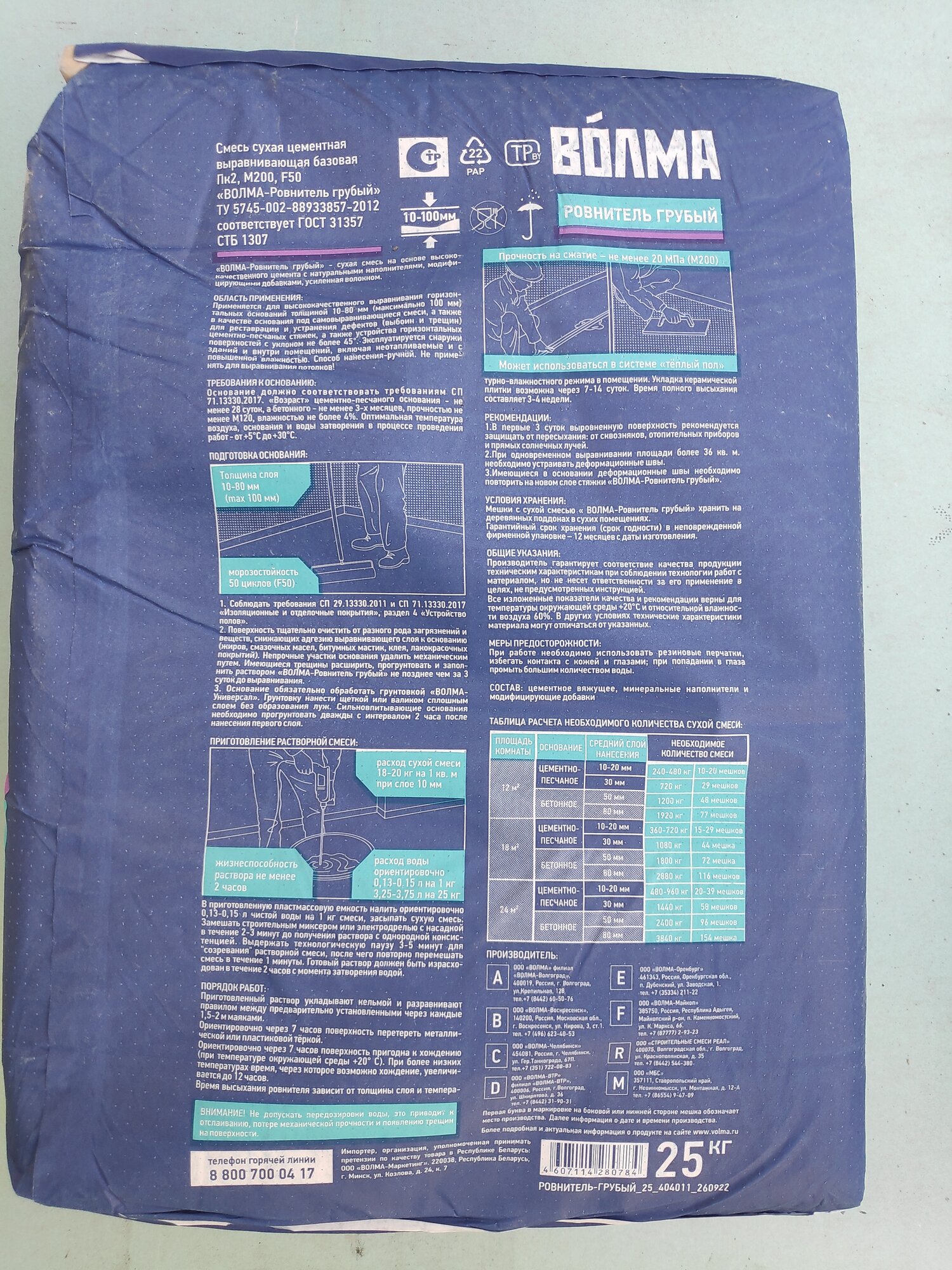 Отзывы на Ровнитель (стяжка пола) первичный Волма Ровнитель грубый 25 кг