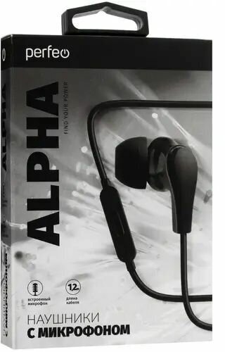 Perfeo наушники внутриканальные c микрофоном «ALPHA» черные (PF_A4940)
