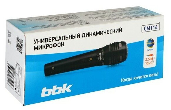 Универсальный динамический проводной микрофон BBK CM114 черный 370 ₽