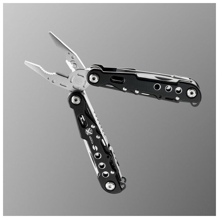 Мультитул Stinger, 105x45 мм, 9 функций, сталь/алюминий, чёрный, в комплекте нейлоновый чехол