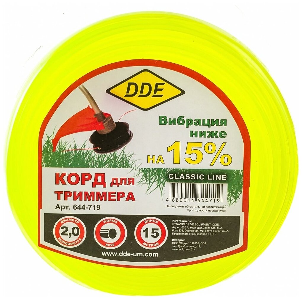 DDE 644-719 Леска для триммера 2.0мм 15м круг DDE