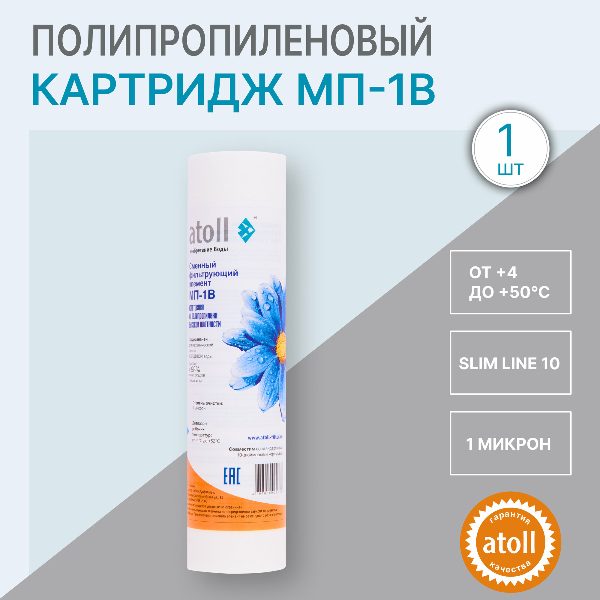 10 цен на Полипропиленовый картридж 10" механическая очистка 1мкм Atoll МП-1В