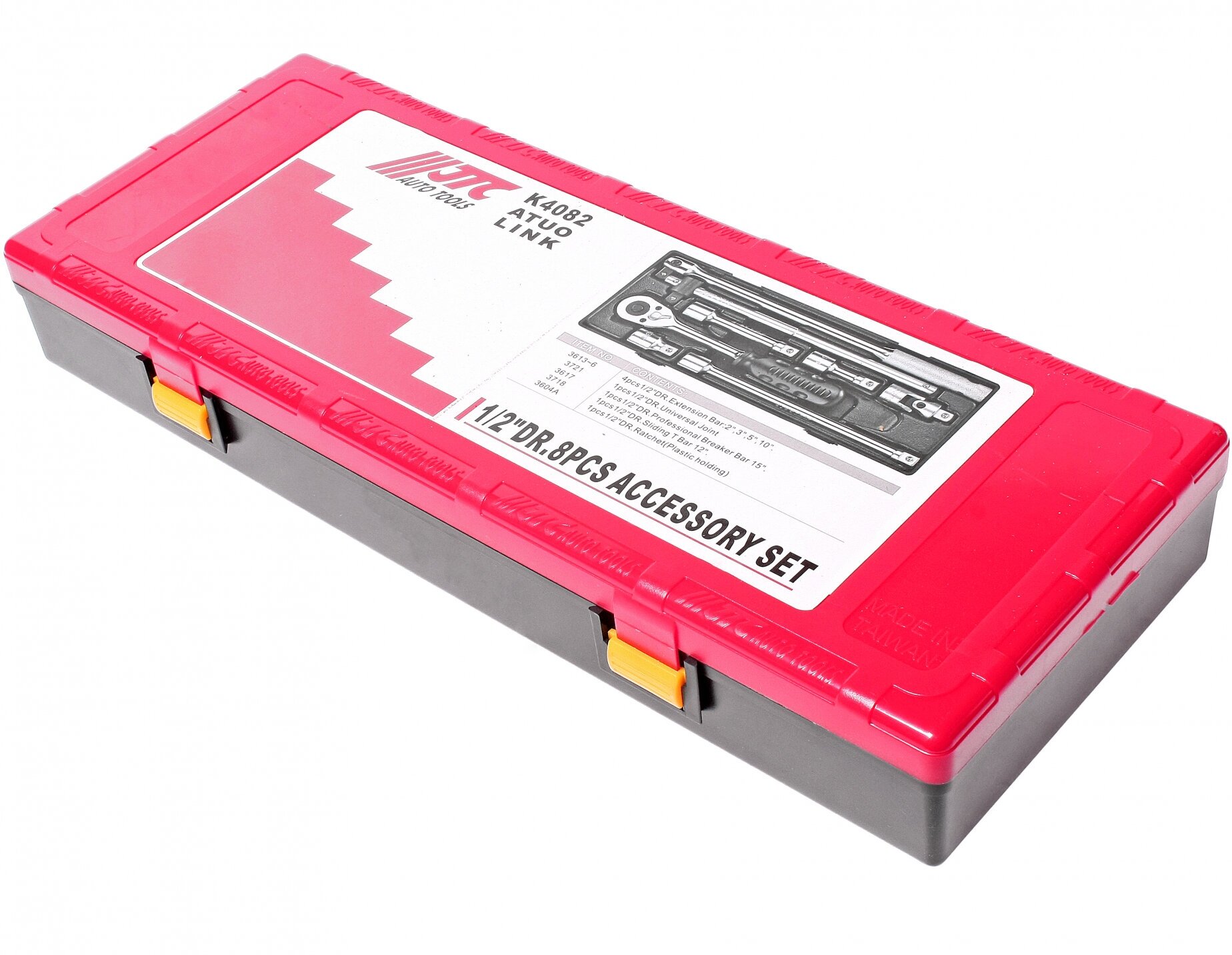Набор инструментов 8 предметов слесарно-монтажный 1/2" (ключ трещот.,ворот.,удлинит.) в кейсе, JTC JTC-K4082 (1 шт.)