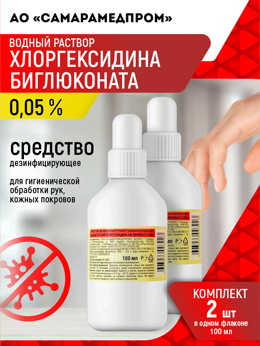 Водный раствор хлоргексидина биглюконата 0,05%, пластик, 100 мл 2 шт