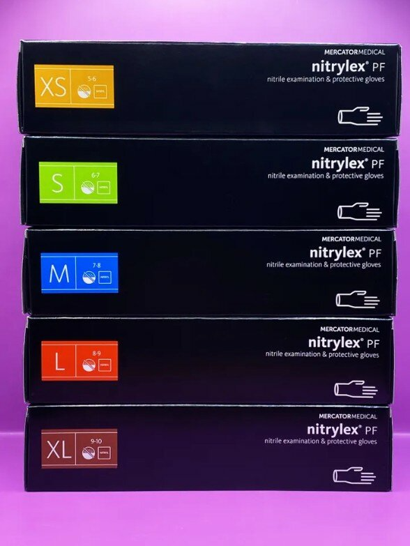 Отзывы на Перчатки нитриловые MERCATOR Medical Nitrylex PF, цвет: черный, размер S, 100 шт. (50 пар), 8 грамм пара нитрила