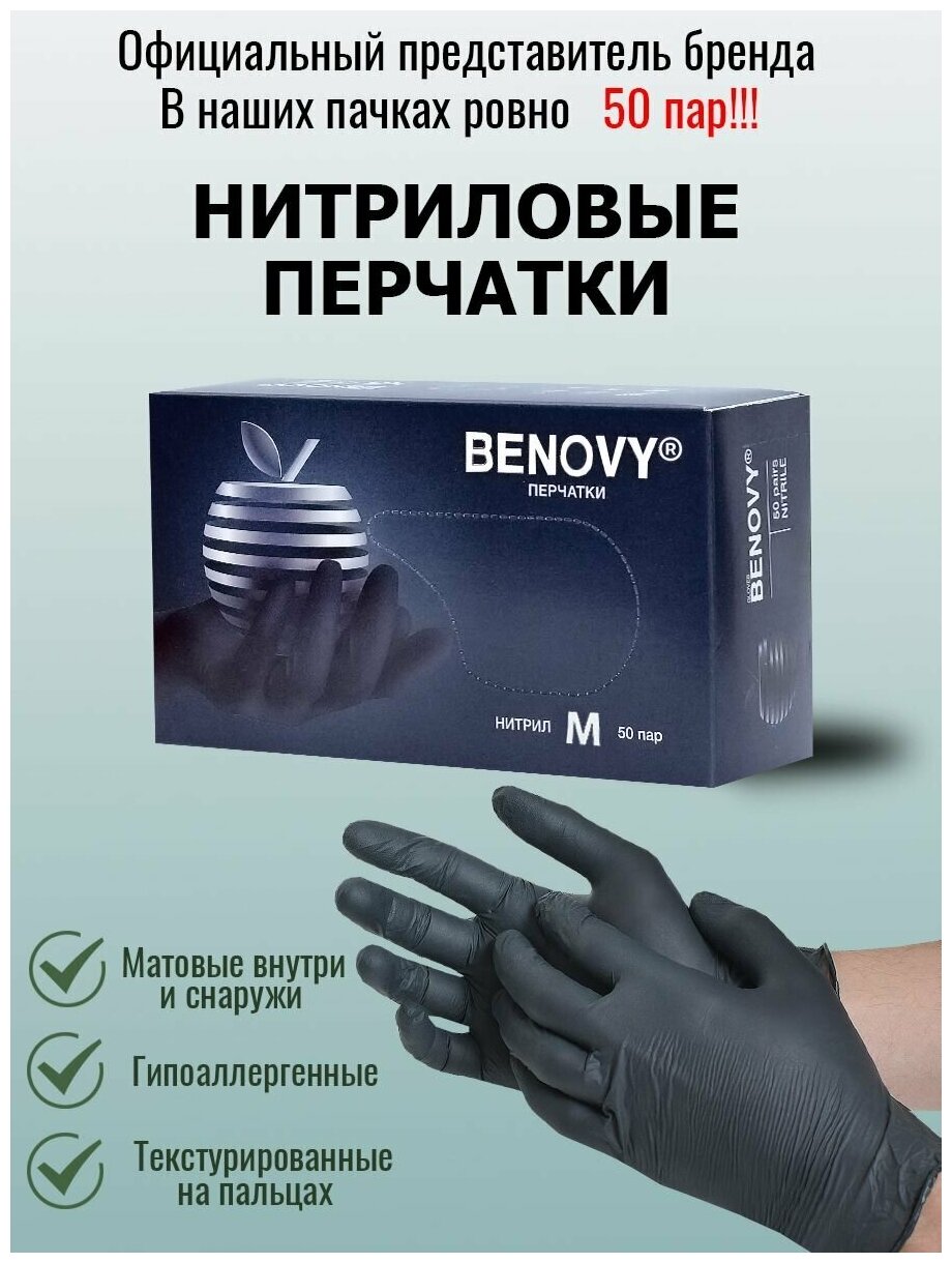 10 цен на Перчатки нитриловые черные BENOVY Dental Formula MultiColor размер M (упаковка 50 пар)