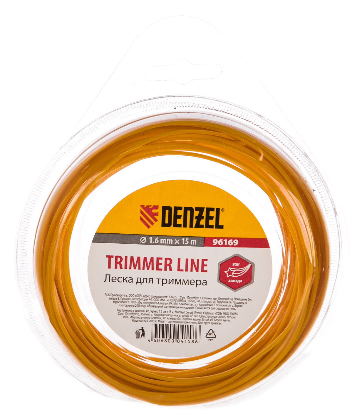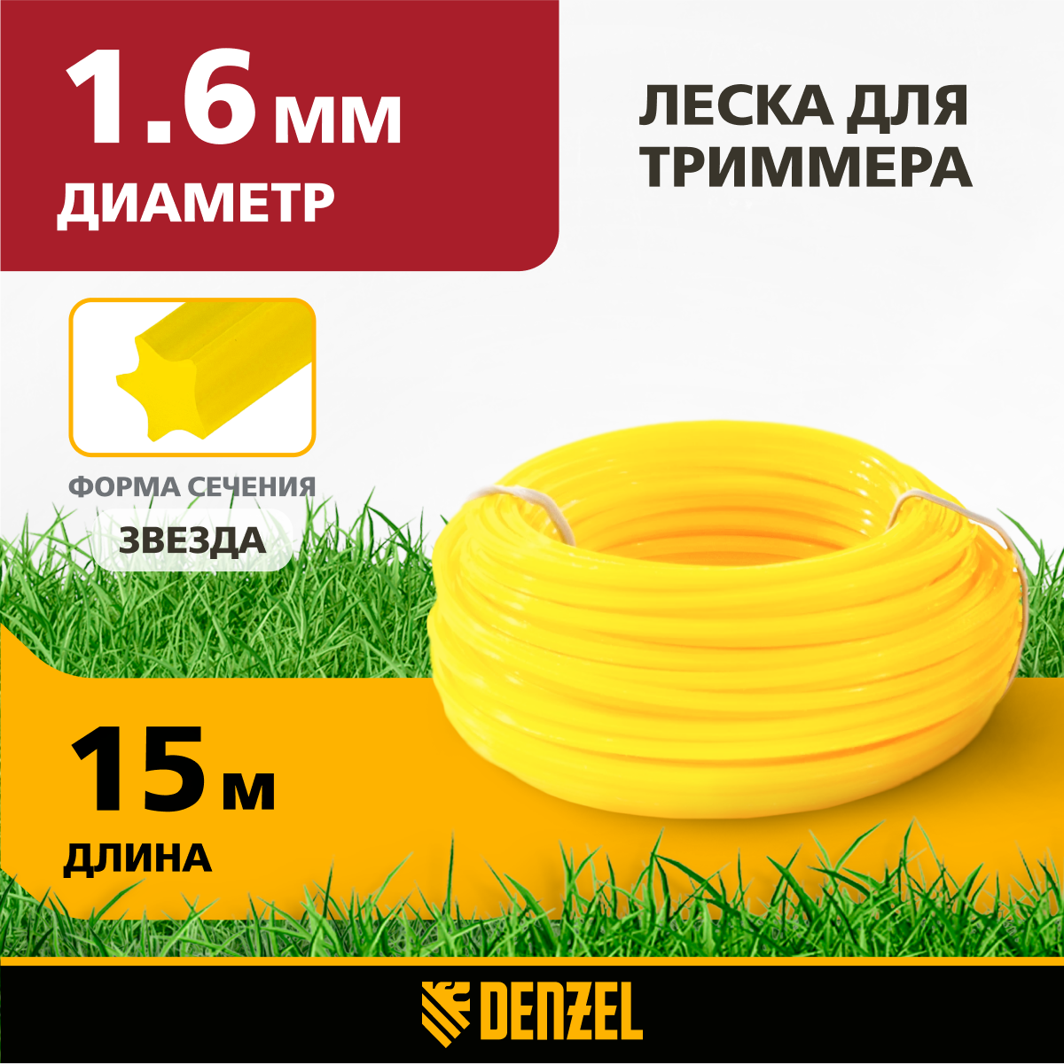 Леска для триммера DENZEL 1.6мм х15м звезда, блистер информация: