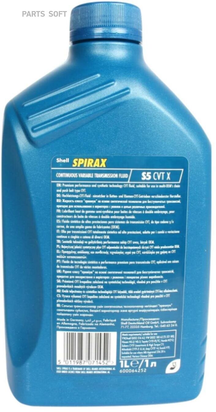 SHELL Масло трансмиссионное CVT X Spirax S5 синт. (1л) (SHELL) информация: