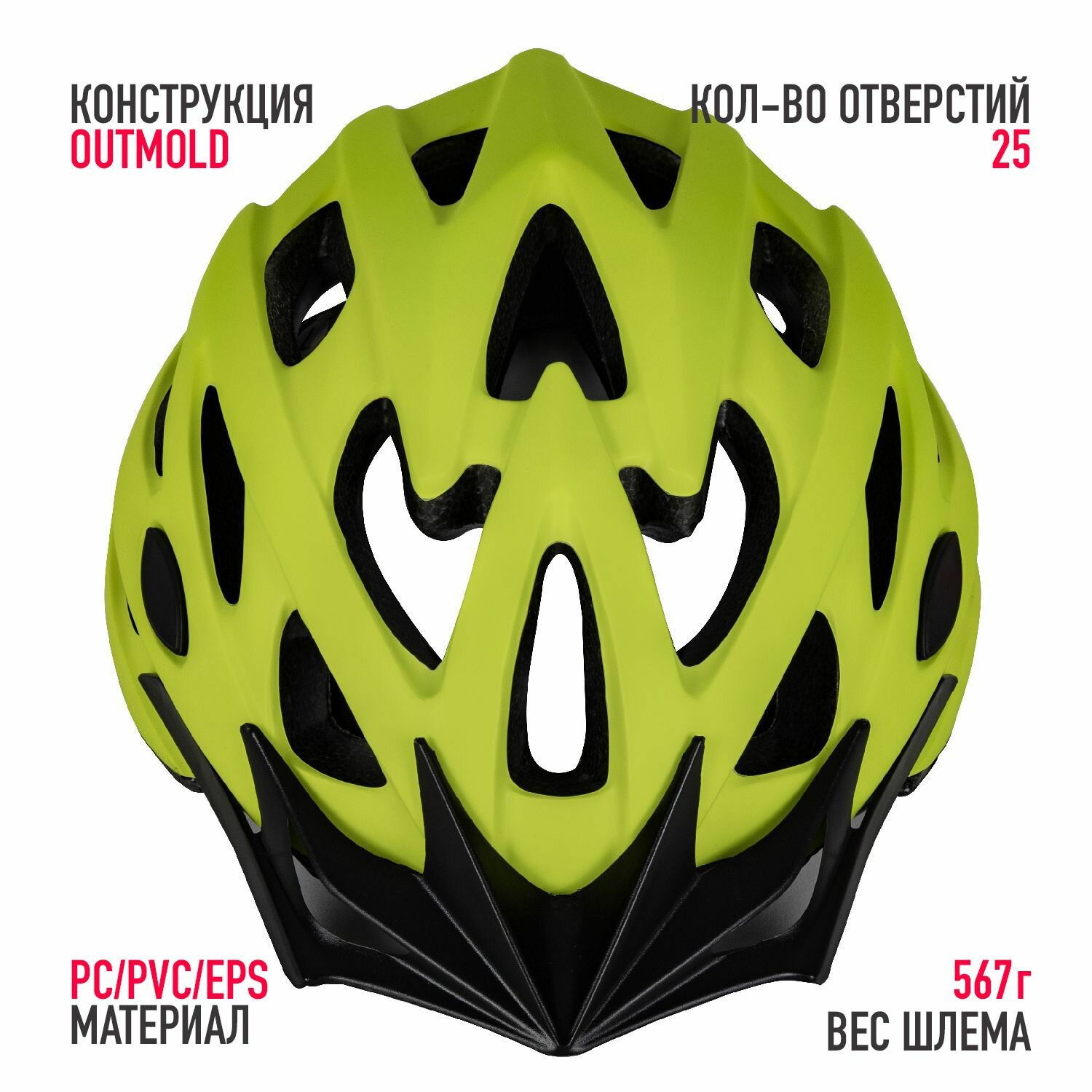 Шлем велосипедный MV29-A козырёк, 25 отверстий STG Х82398 L (58-61 см) Зелёный матовый