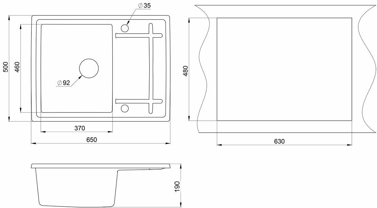 Мойка гранитная EMAR 650х500х190 мм EMQ-1650.Q Антрацит