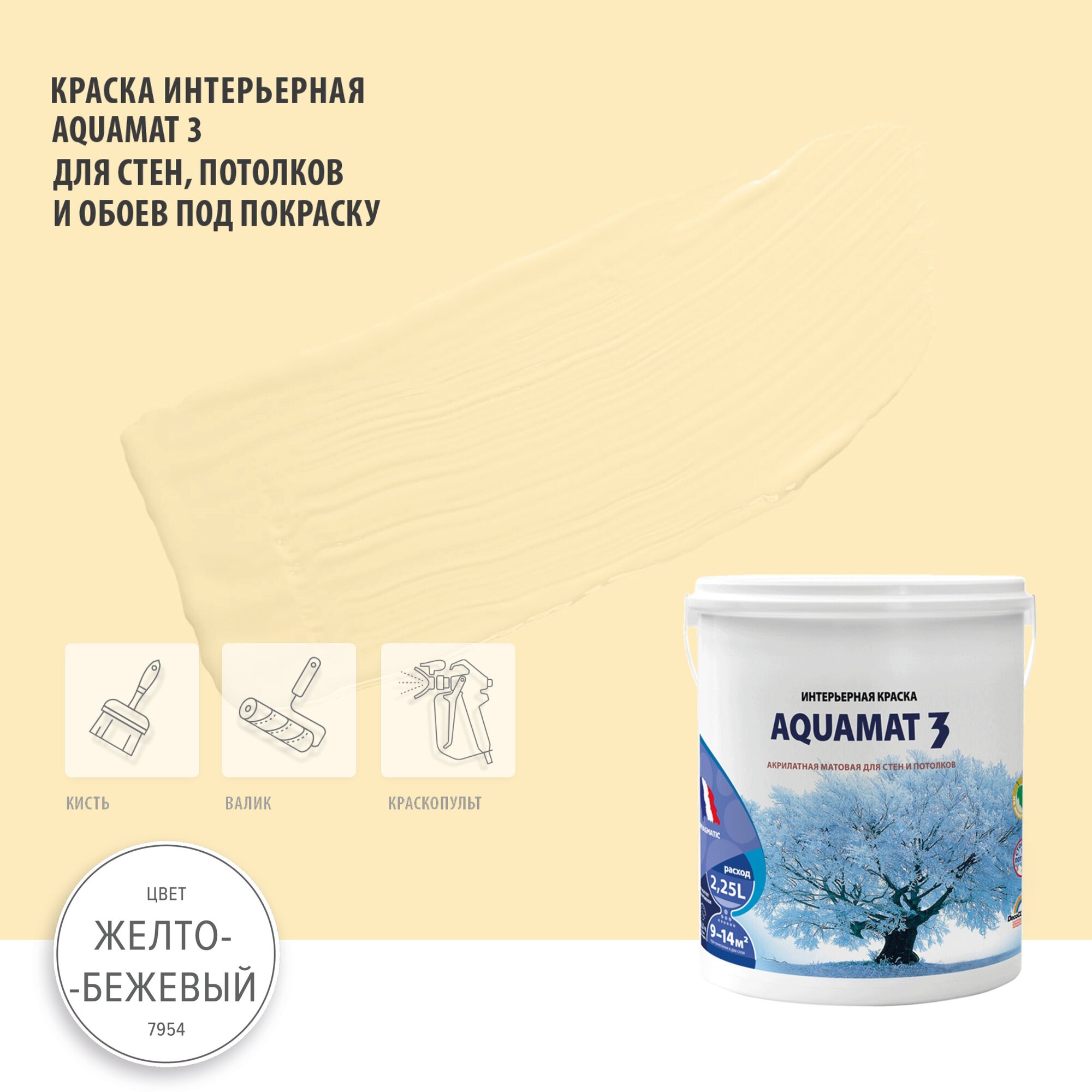 Краска матовая для стен, потолков и обоев под окраску - AQUAMAT (Аквамат) 3, объём 2.25л, цвет Светло желтый (Желто бежевый) оттенок 7954 информация: