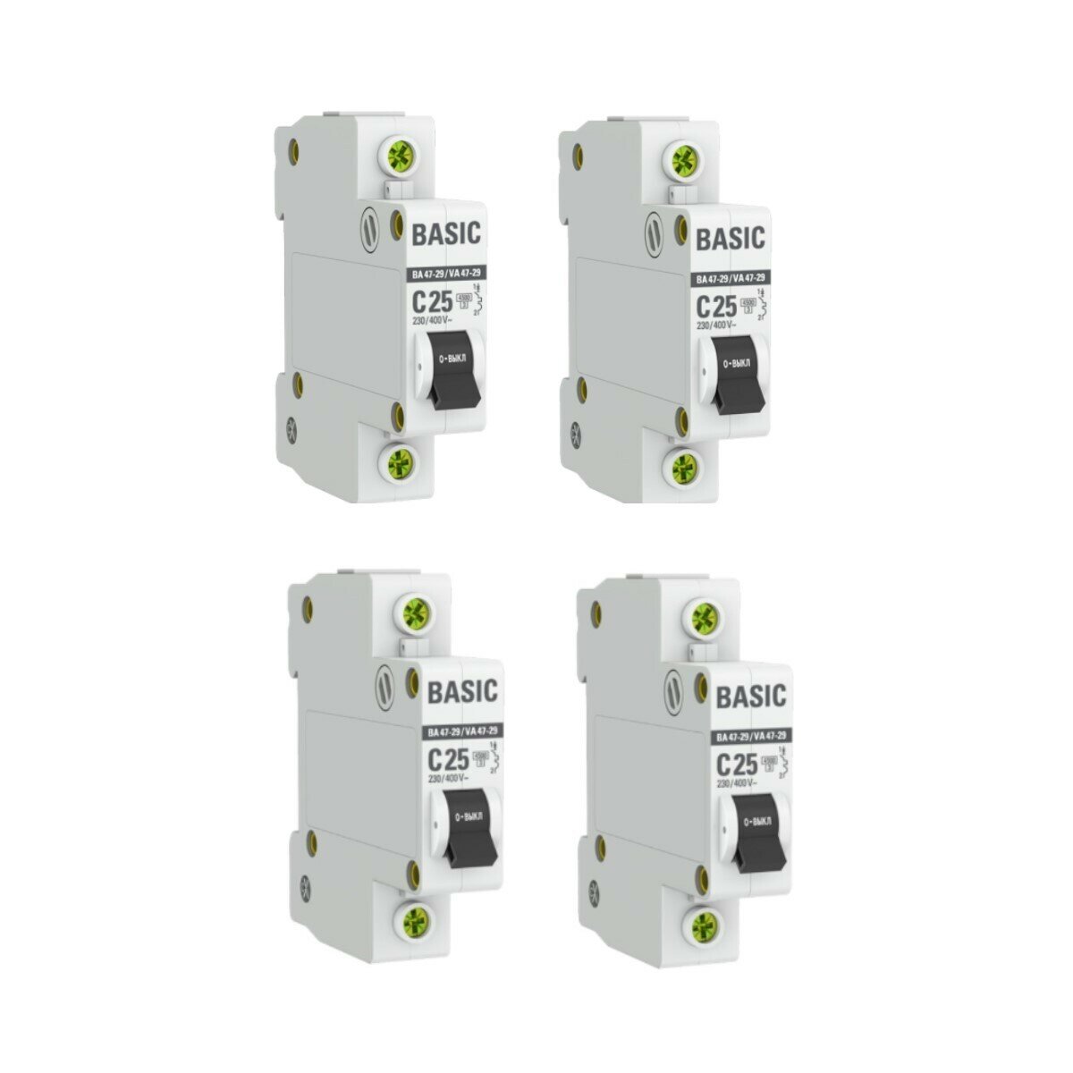 Автоматический выключатель EKF 1P 25А (C) 4,5kA ВА 47-29 EKF Basic 4 штуки информация: