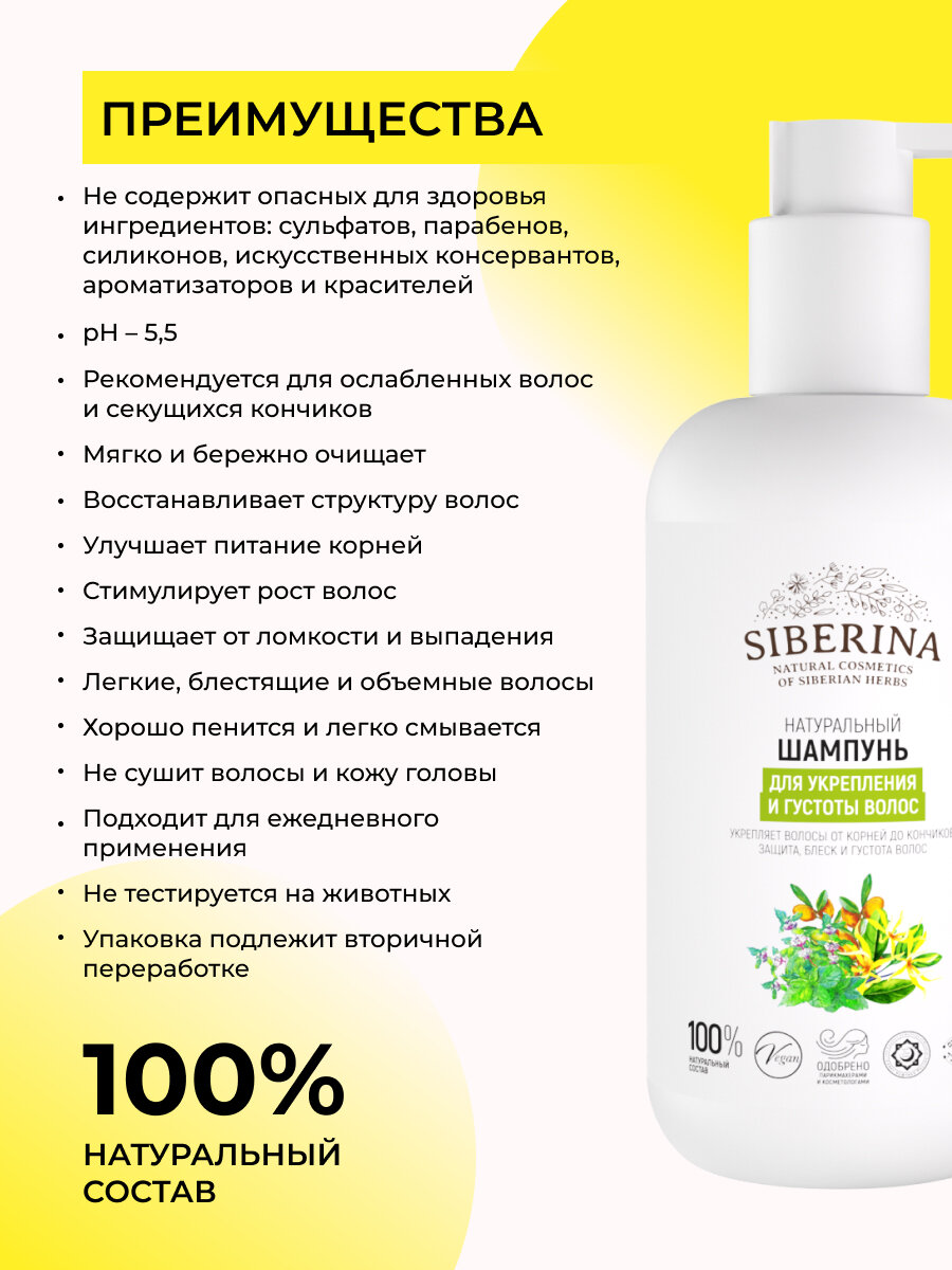 Siberina Натуральный шампунь "Для укрепления и густоты волос" 200 мл информация: