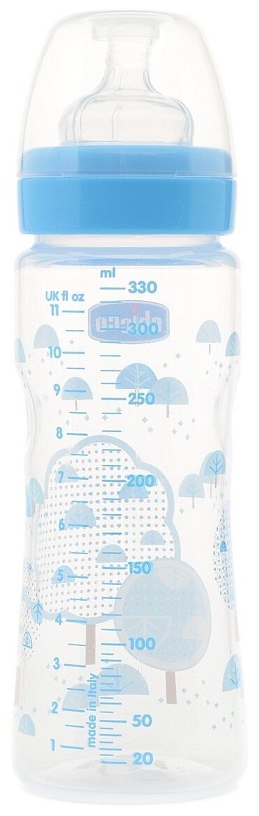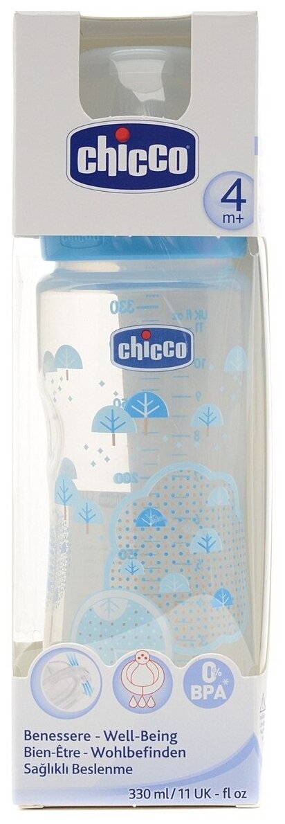 Chicco Бутылочка с соской из силикона Well-Being, 330 мл boy/girl, с 4 месяцев, голубой информация: