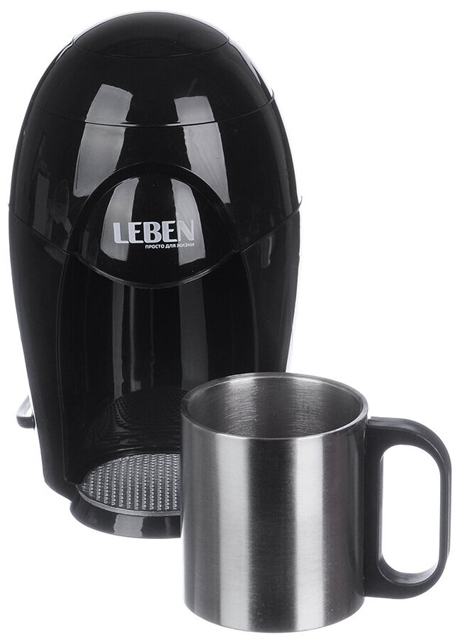 LEBEN Кофеварка капельная 400Вт, на одну чашку 150мл, корпус пластик, отделка нерж