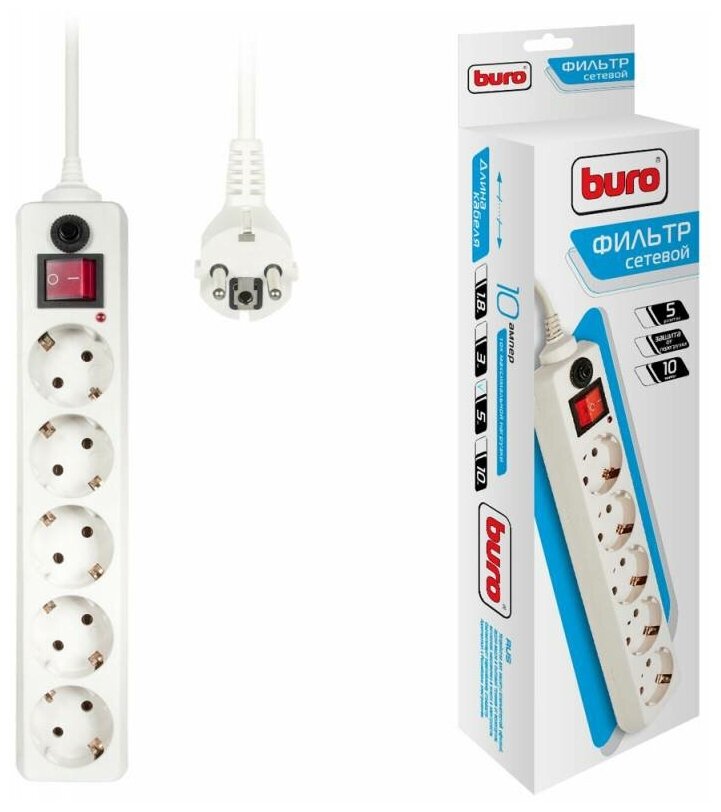 Отзывы на Buro Сетевые фильтры Сетевой фильтр 5 розеток 500SH-5-SW-W 5м, белый коробка