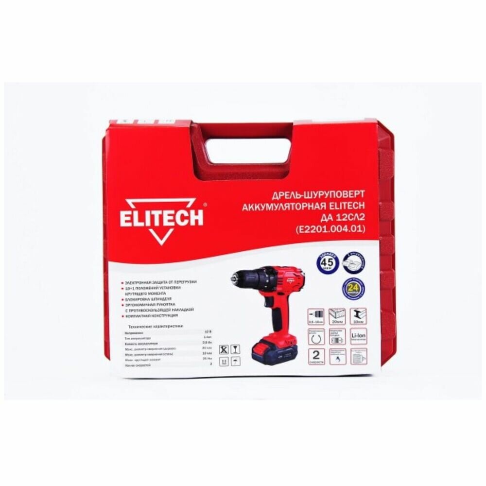 Elitech ДА 12СЛ2 (е2201.004.01) Дрель аккумуляторная (191611)