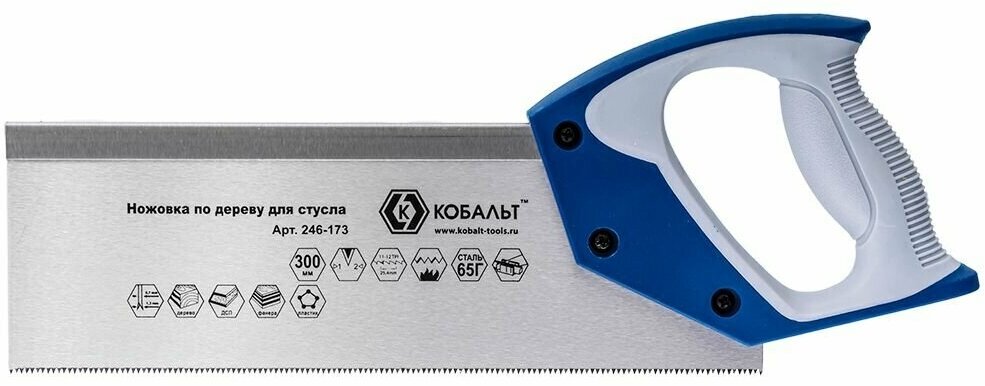 Ножовка кобальт по дереву 300 мм, для стусла, 12 TPI, закаленный зуб, 2D-заточка, двухкомпонентная рукоятка 246-173