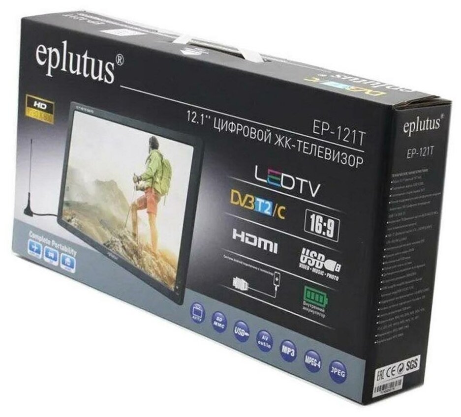 Портативный телевизор Эплутус Модель: EP-121T (G78232LET) 12,1 DVB-T2 - цифровой ЖК-телевизор с экраном 12,1 дюймов (30,73 см)
