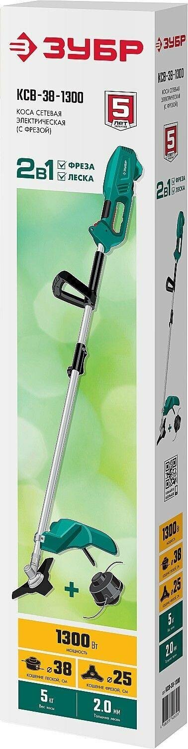 Коса сетевая (триммер), ЗУБР 1300 Вт ш/с 38/25 см КСВ-38-1300 информация:
