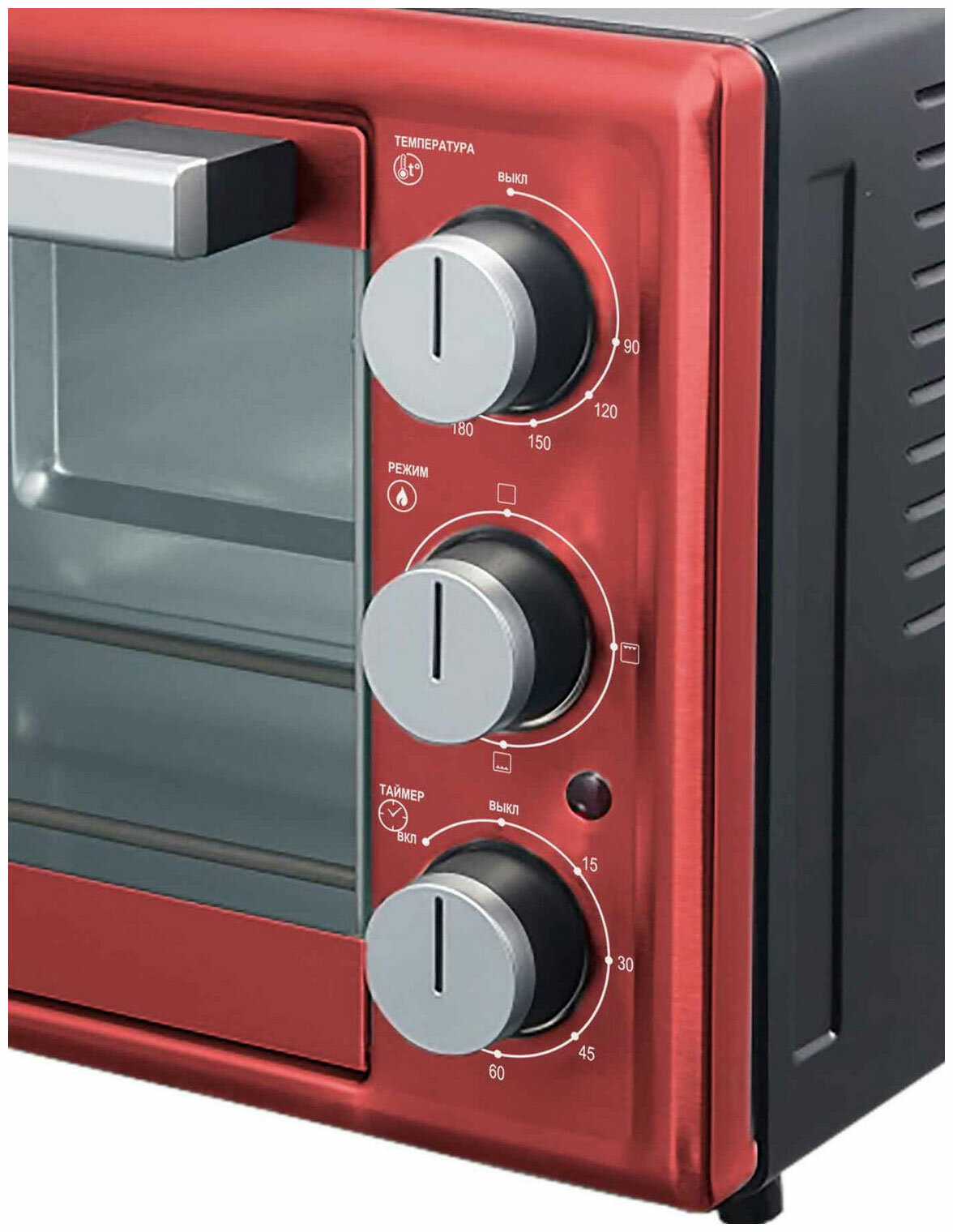 Мини-духовка Oursson "OV3815/RD", красная, внутренняя подсветка, с конвекцией и грилем , 38л