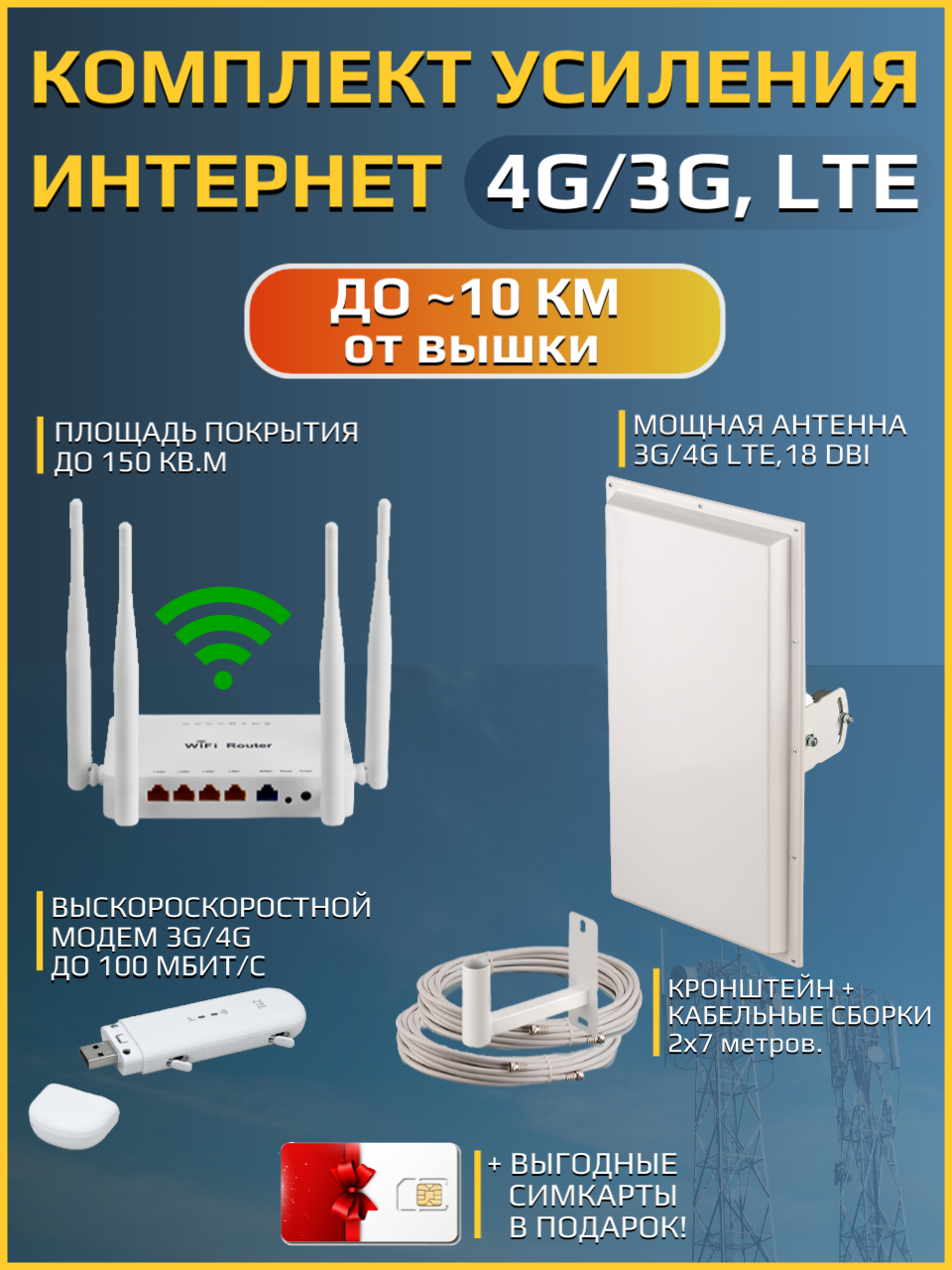 10 цен на 3G / 4G LTE интернет комплект для дачи / офиса - оптимальный загород, для усиления сотового сигнала. + Сим карты +кронштейн + сим карты