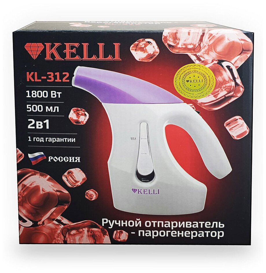 Отпариватель KELLI KL-312, ручной, 1800 Вт, 500 мл, насадка чайник, бело-фиолетовый