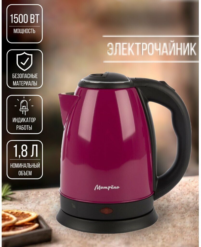 Матрёна MA-002 электрический (1,8 л) стальной бордовый . информация: