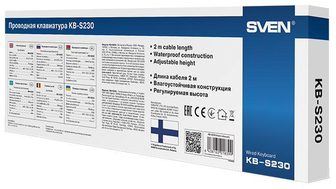 Клавиатура Sven KB-S230 black 104 кл., 1000DPI, 2+1кл USB информация:
