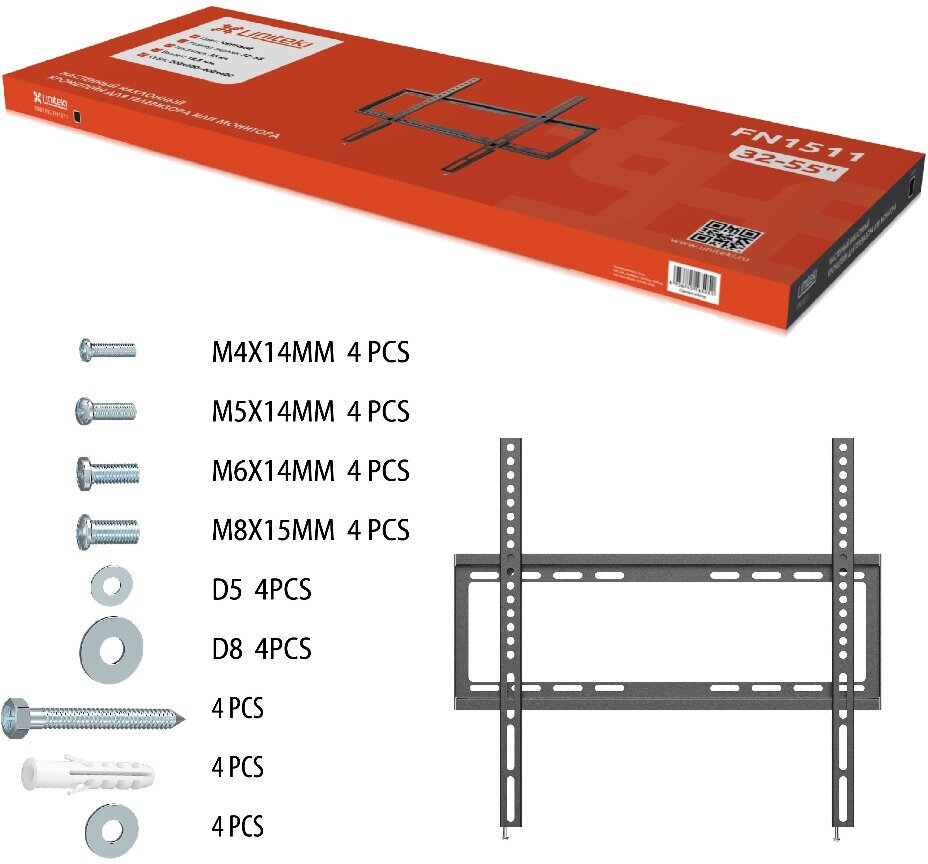Кронштейн UniTeki FN1511 SLIM фиксированный для телевизора или монитора диагональю от 32 до 55 дюймов информация: