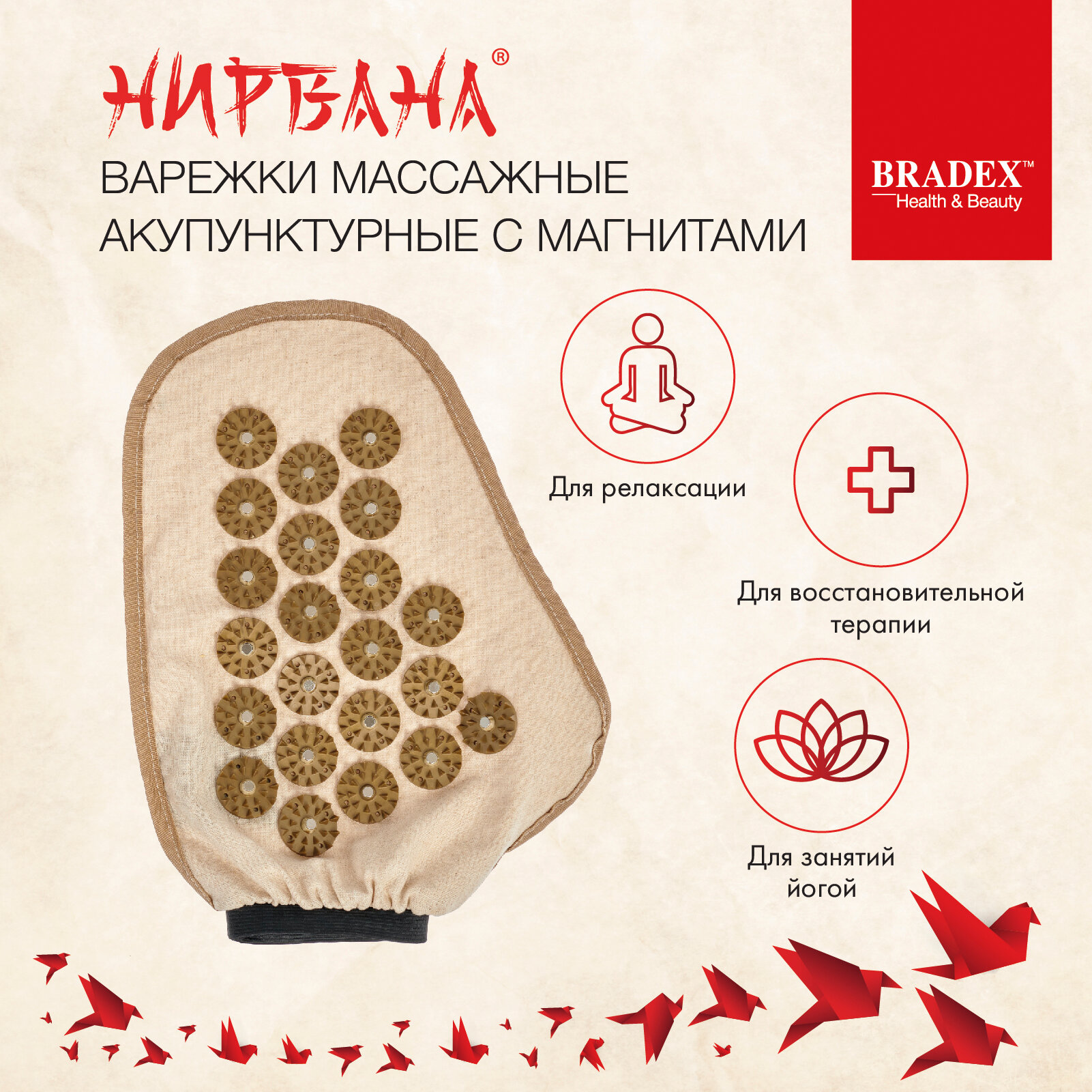 Варежки акупунктурные Нирвана с магнитами, бежевые Bradex KZ 0896 1 116 ₽