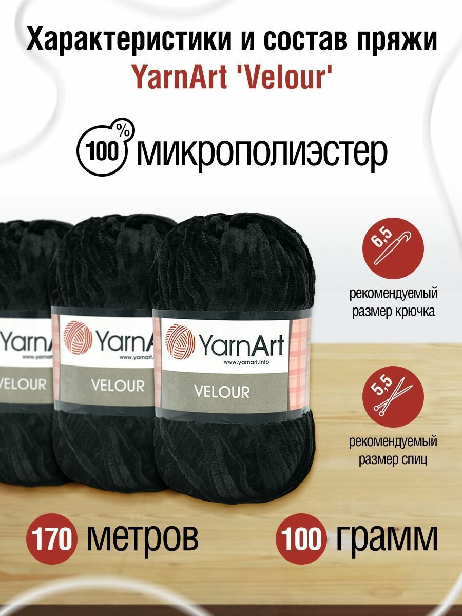 Пряжа для вязания YarnArt 'Velour' 100г 170м (100% микрополиэстер) (842 черный), 5 мотков информация: