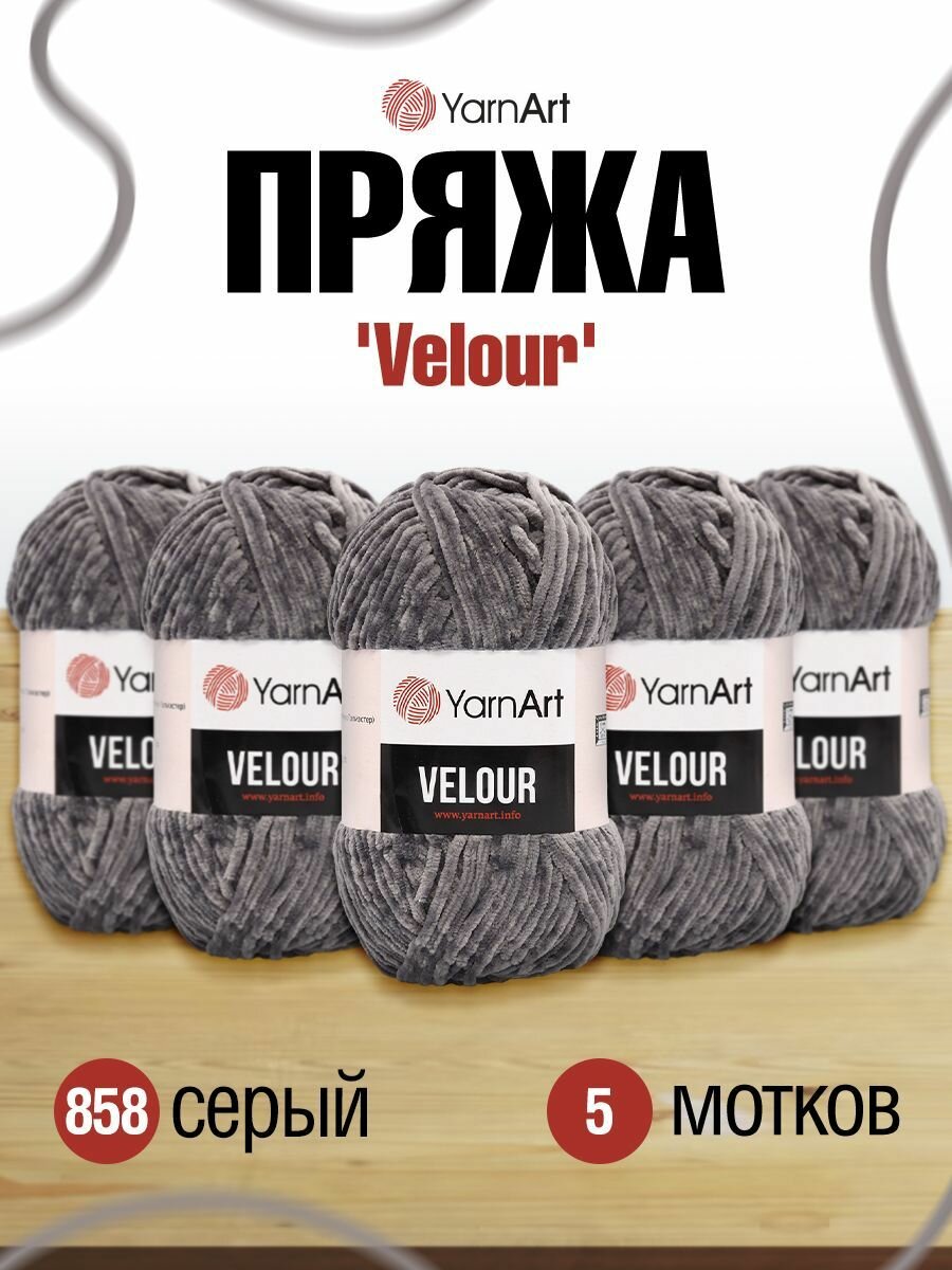 Пряжа для вязания YarnArt 'Velour' 100г 170м (100% микрополиэстер) (858 серый), 5 мотков информация: