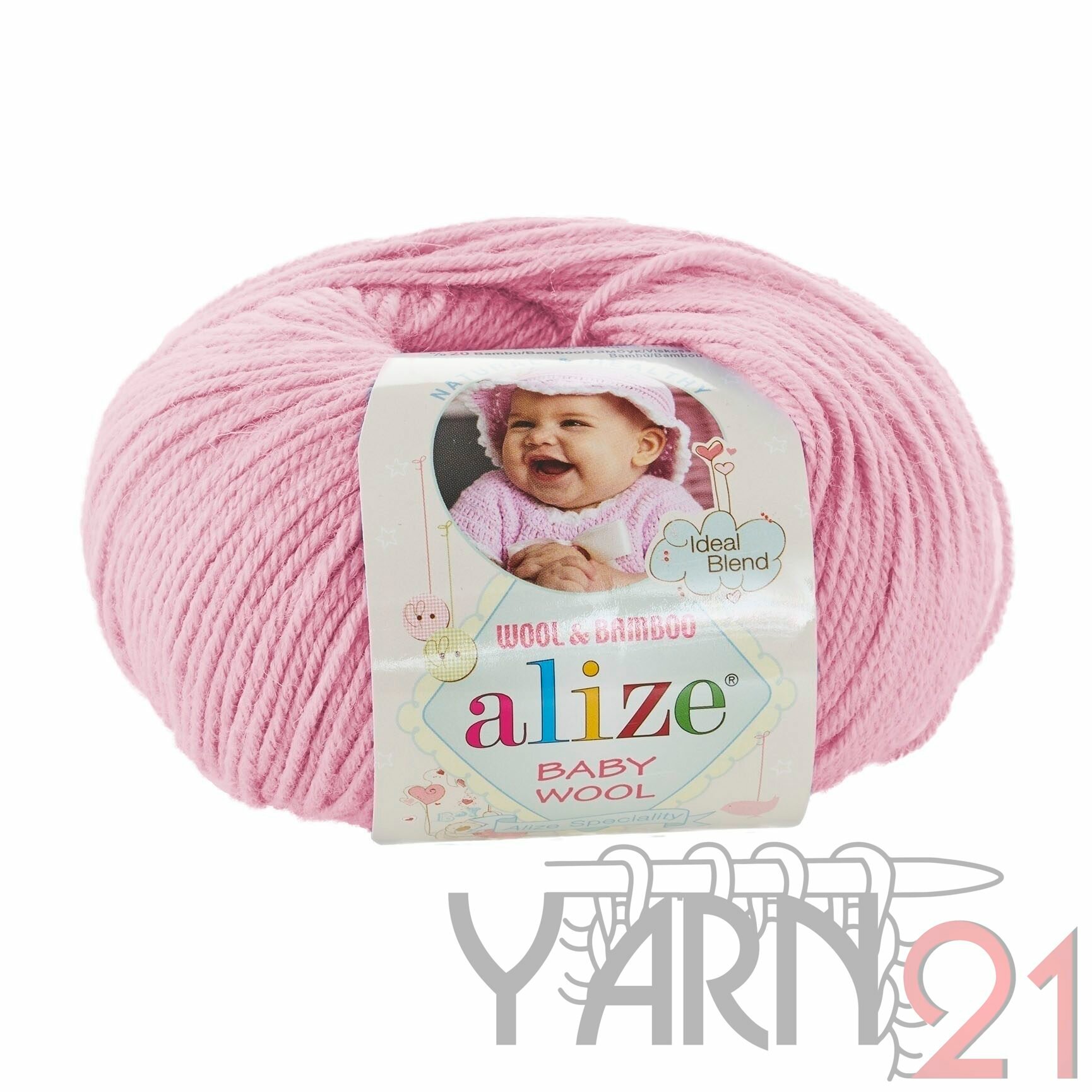 Пряжа Alize baby wool - 1 шт, 194 розовый, 175 м/50г, 40% шерсть, 20% бамбук, 40% акрил /Ализе беби вул/
