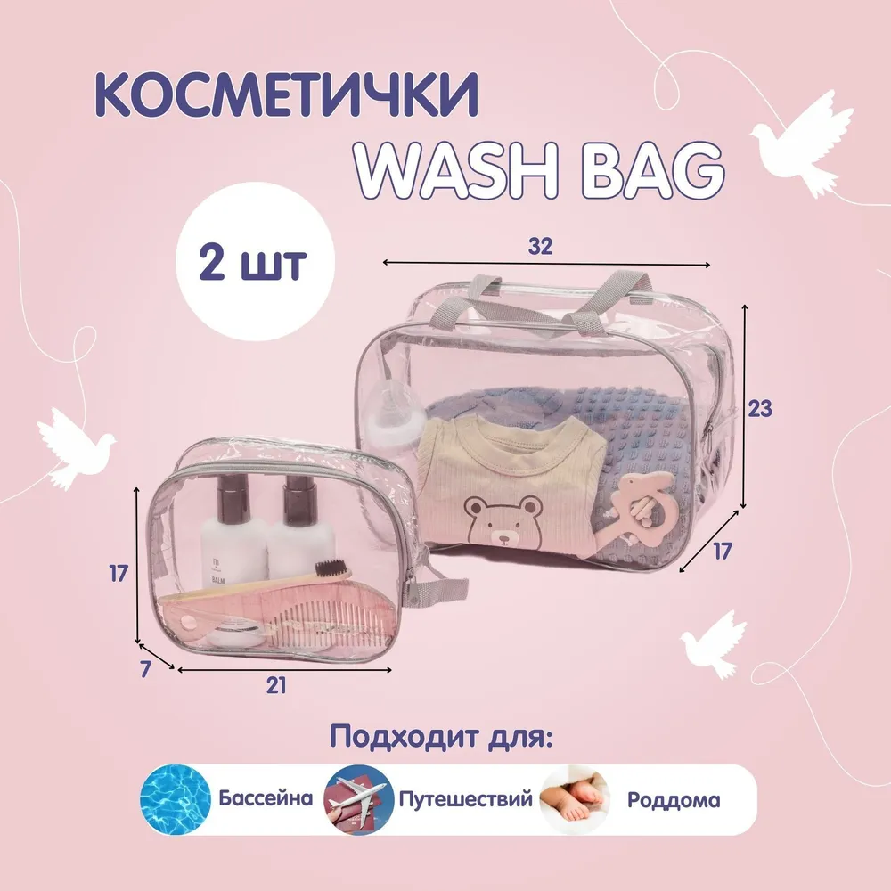 Сумка для роддома, прозрачная, для мамы и малыша "здравствуй, мама!", цвет розовый, набор из 2 штук 368 ₽