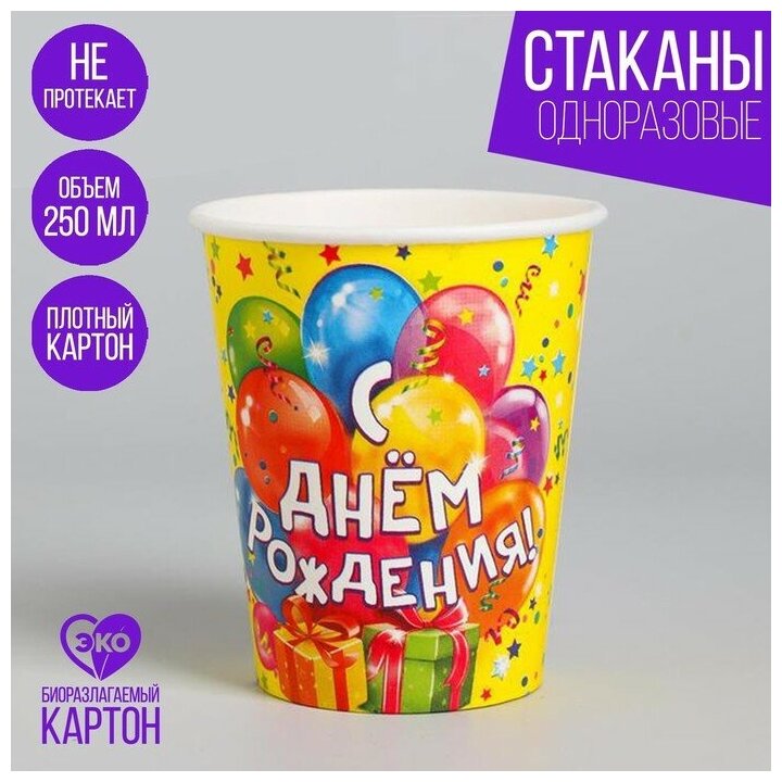 Отзывы на Стакан бумажный «С днём рождения! Шарики, подарки», 250 мл(10 шт.)