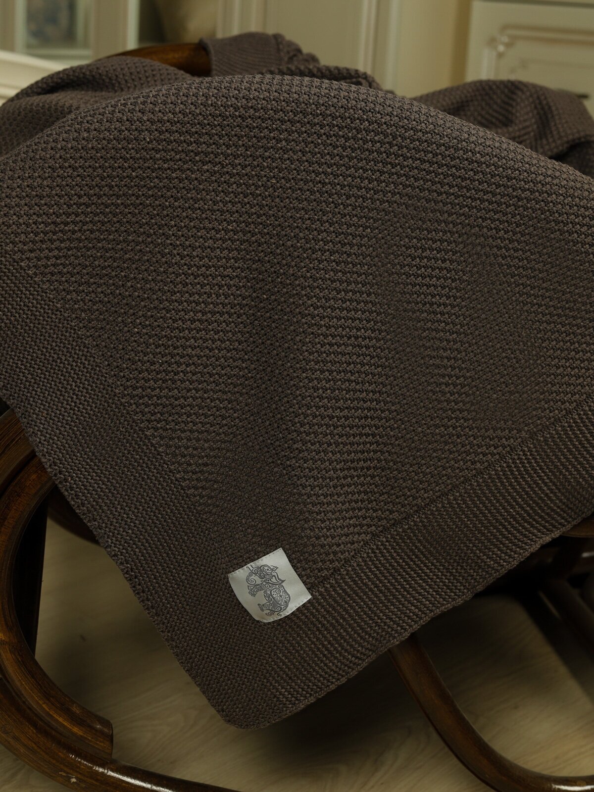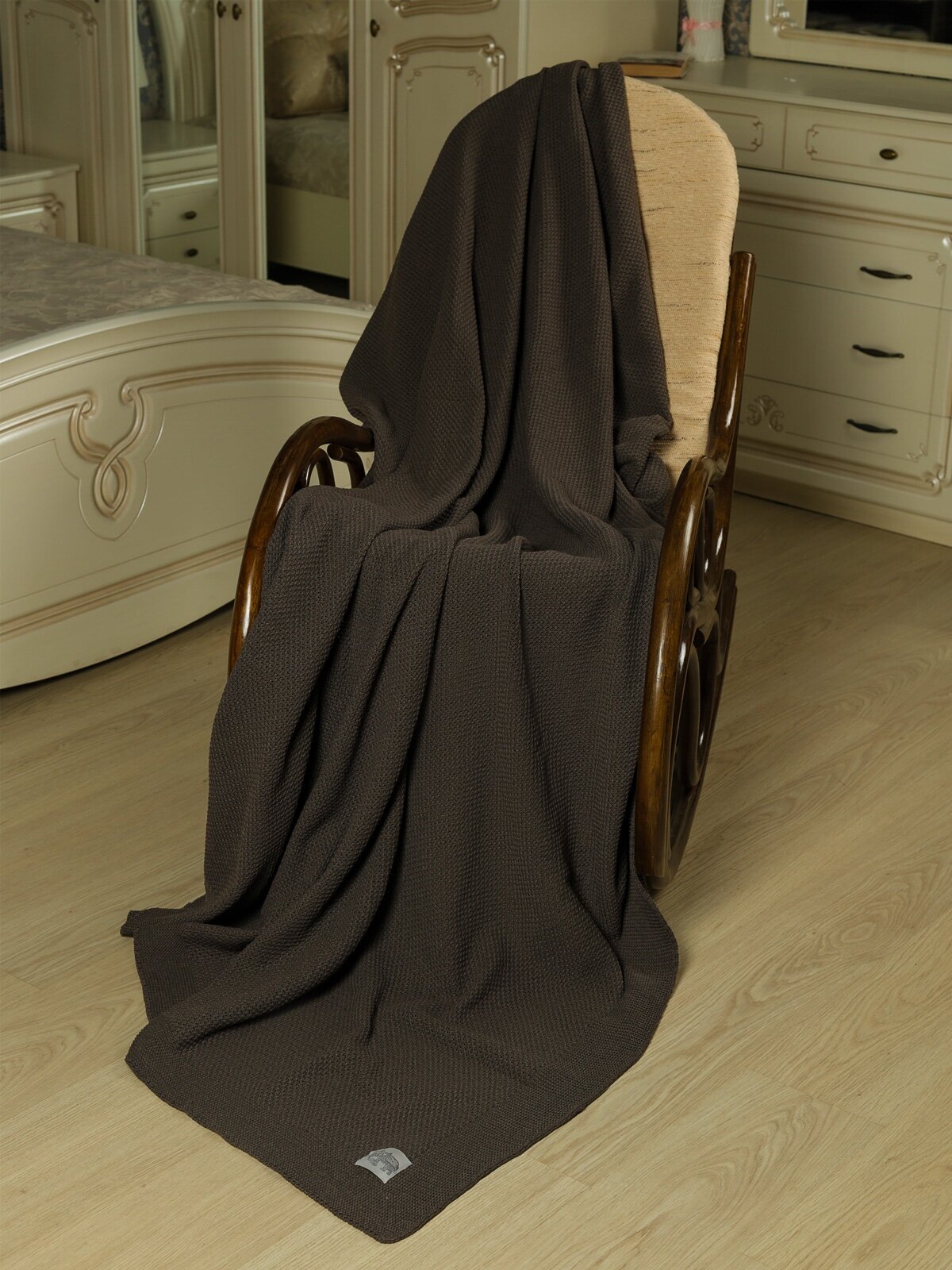 Плед вязаный, Warm Whiff, коричневый, 180х220, хлопок, покрывало для взрослого, дачи, спальни, кровати, однотонное одеяло, в подарок, мягкий информация: