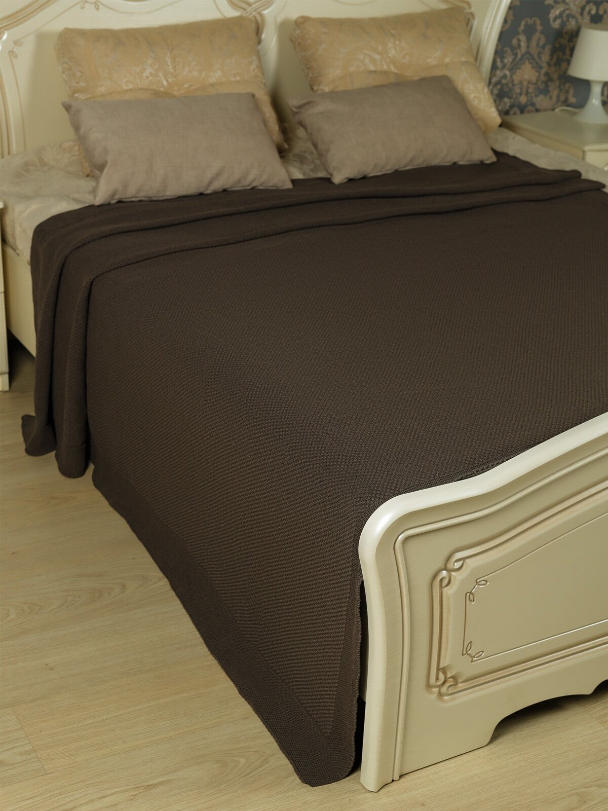 10 цен на Плед вязаный, Warm Whiff, коричневый, 180х220, хлопок, покрывало для взрослого, дачи, спальни, кровати, однотонное одеяло, в подарок, мягкий