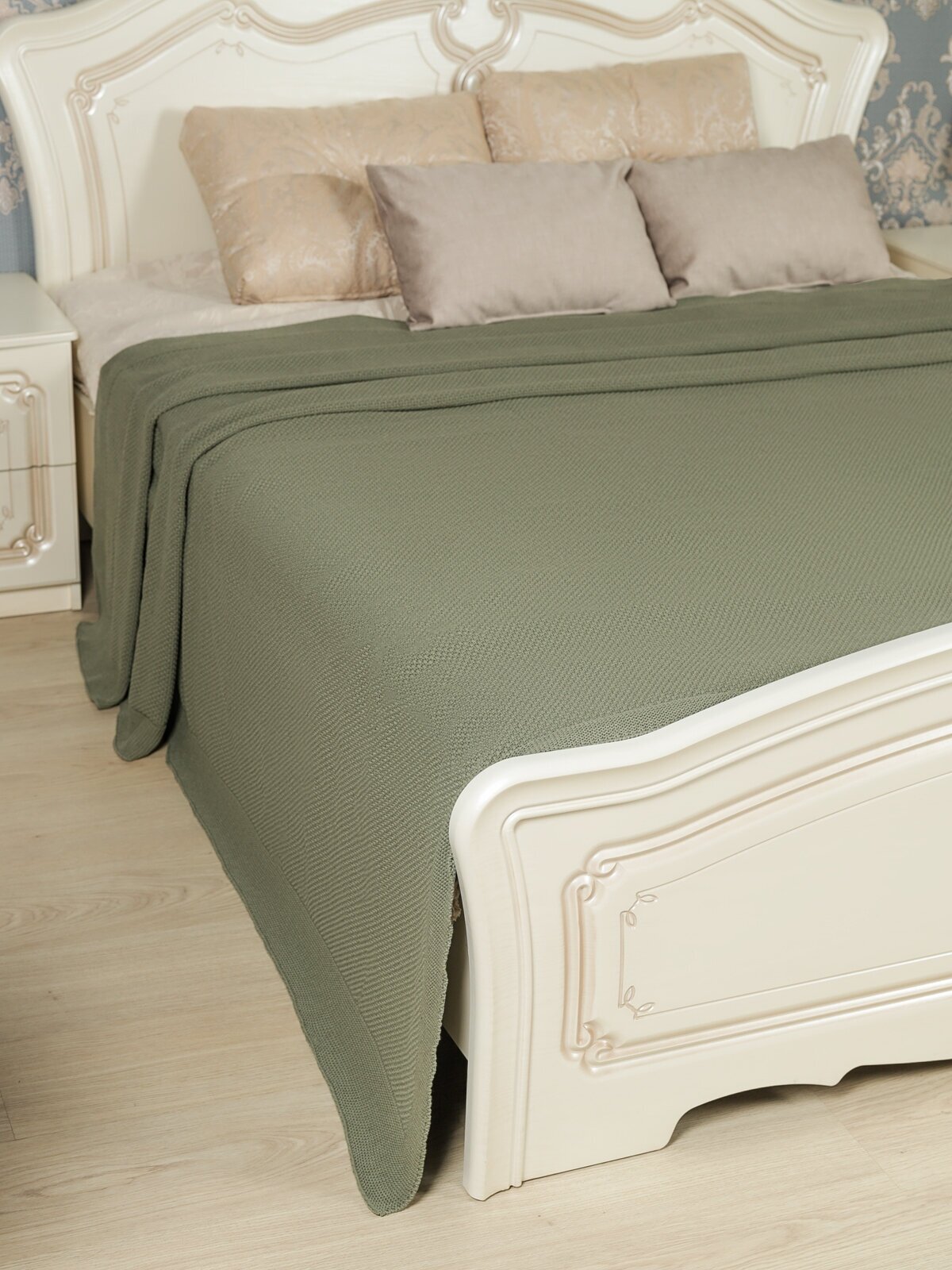 Плед 180х220, вязаный, Warm Whiff, оливковый, хлопок 100%, покрывало на кровать, на диван, на кресло, большой, тонкий, в подарочной коробке